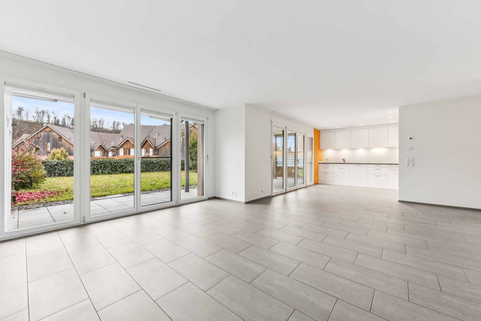Diese attraktive 3.5-Zimmer-Eigentumswohnung im Erdgeschoss bietet alles, was Sie für ein angenehmes Wohngefühl brauchen: viel Licht, eine durchdachte Raumaufteilung und eine grosse Terrasse, von der aus Sie den Blick ins Grüne geniessen können.