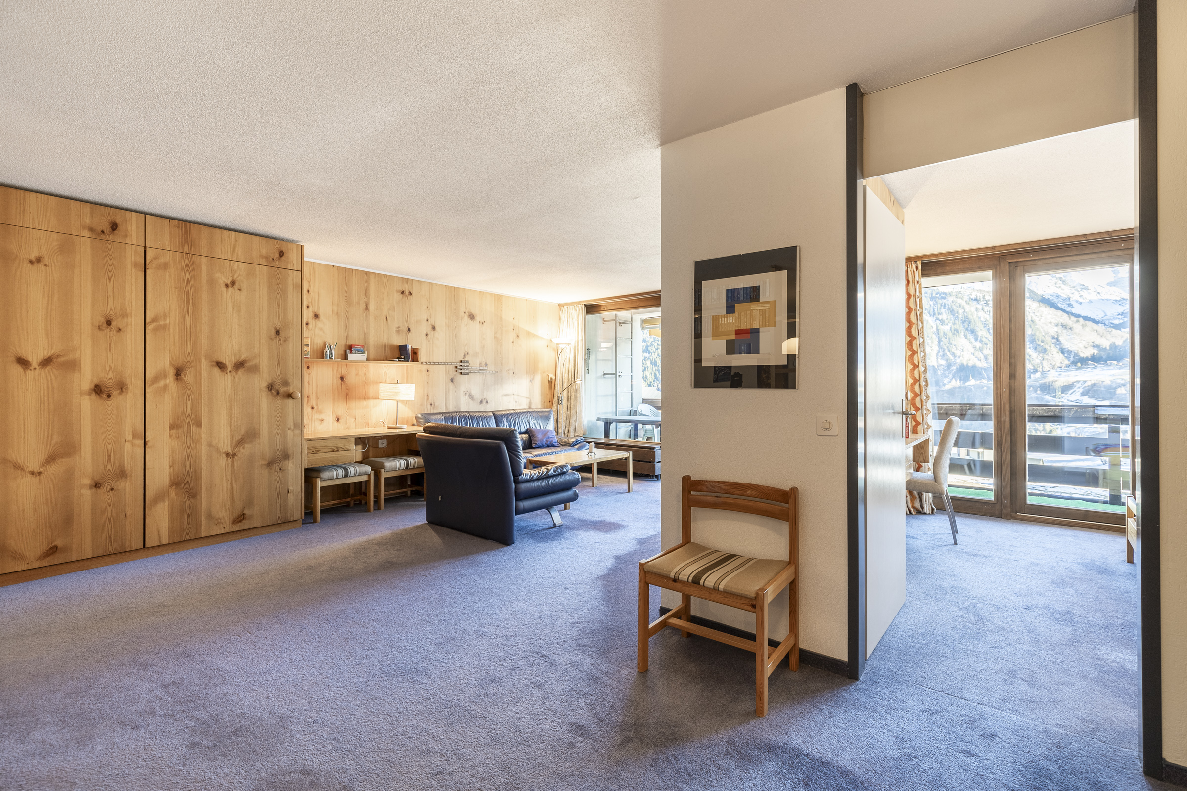 Ein besonderes Highlight ist der grosszügige Balkon mit rund 14 m², der den Wohnraum ins Freie erweitert. Hier geniessen Sie sonnige Stunden, frische Bergluft und den Blick in die alpine Umgebung.