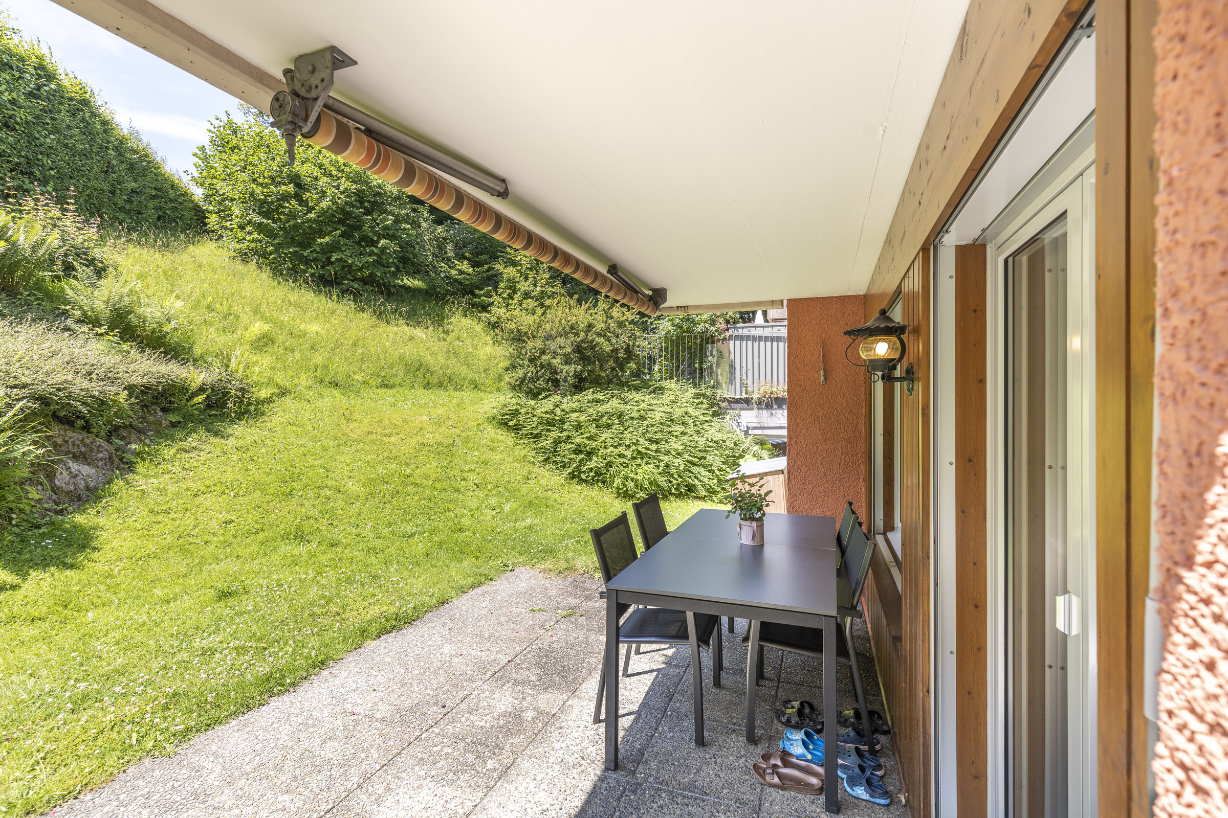 Diese gepflegte 3.5-Zimmer Gartenwohnung überzeugt mit einem stimmigen Wohngefühl und einem durchdachten Grundriss. Bereits das Entrée mit integrierter Garderobe heisst Sie herzlich willkommen.