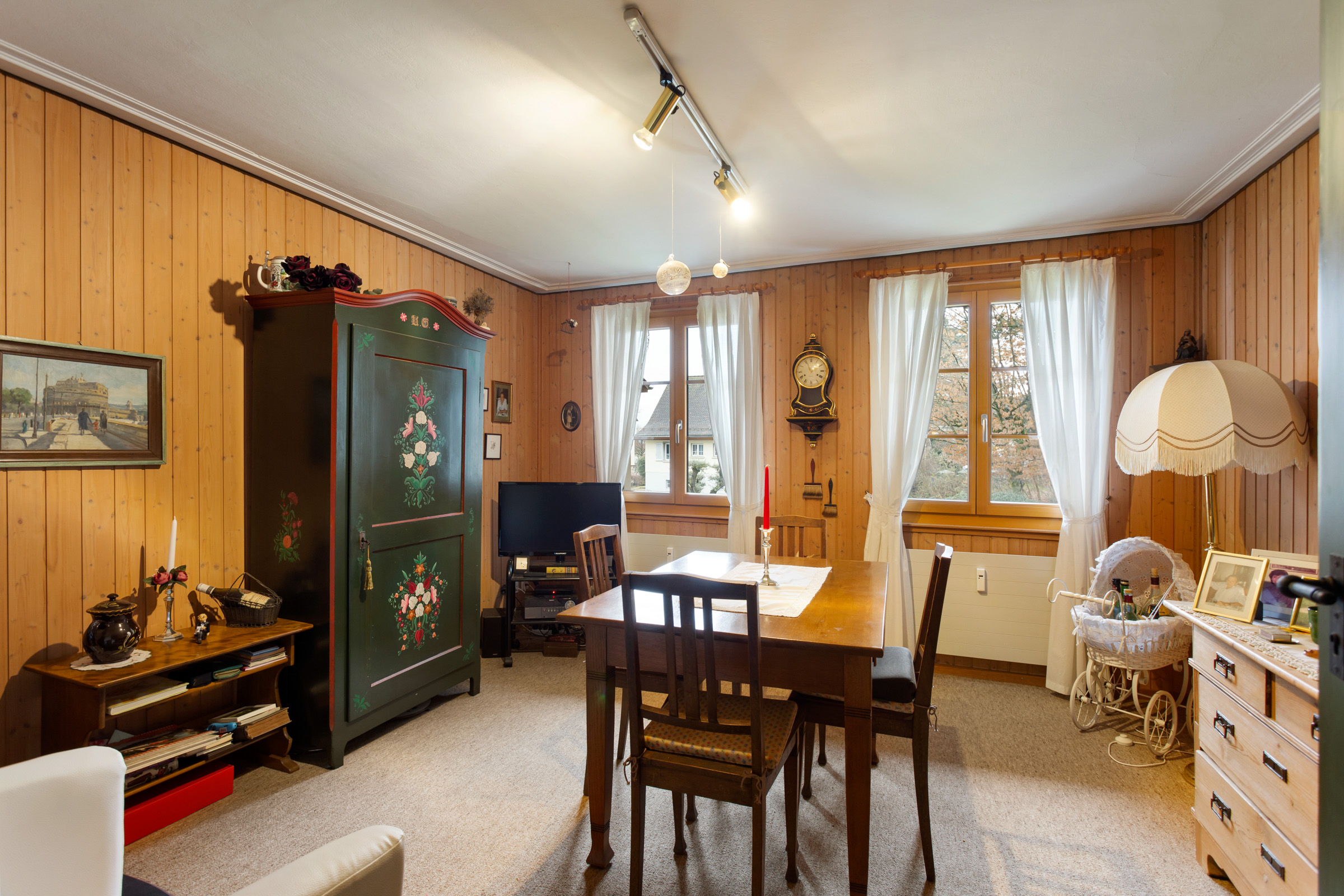 Zum Verkauf stehen zwei Stockwerkeinheiten, die aktuell zu einer Einheit ausgebaut sind. Die ursprüngliche 2.5-Zimmer- und 3.5-Zimmer-Wohnung wurden in eine 6-Zimmer-Maisonettewohnung zusammengeführt. Diese kann bei Bedarf ohne grossen Aufwand wieder getrennt werden.