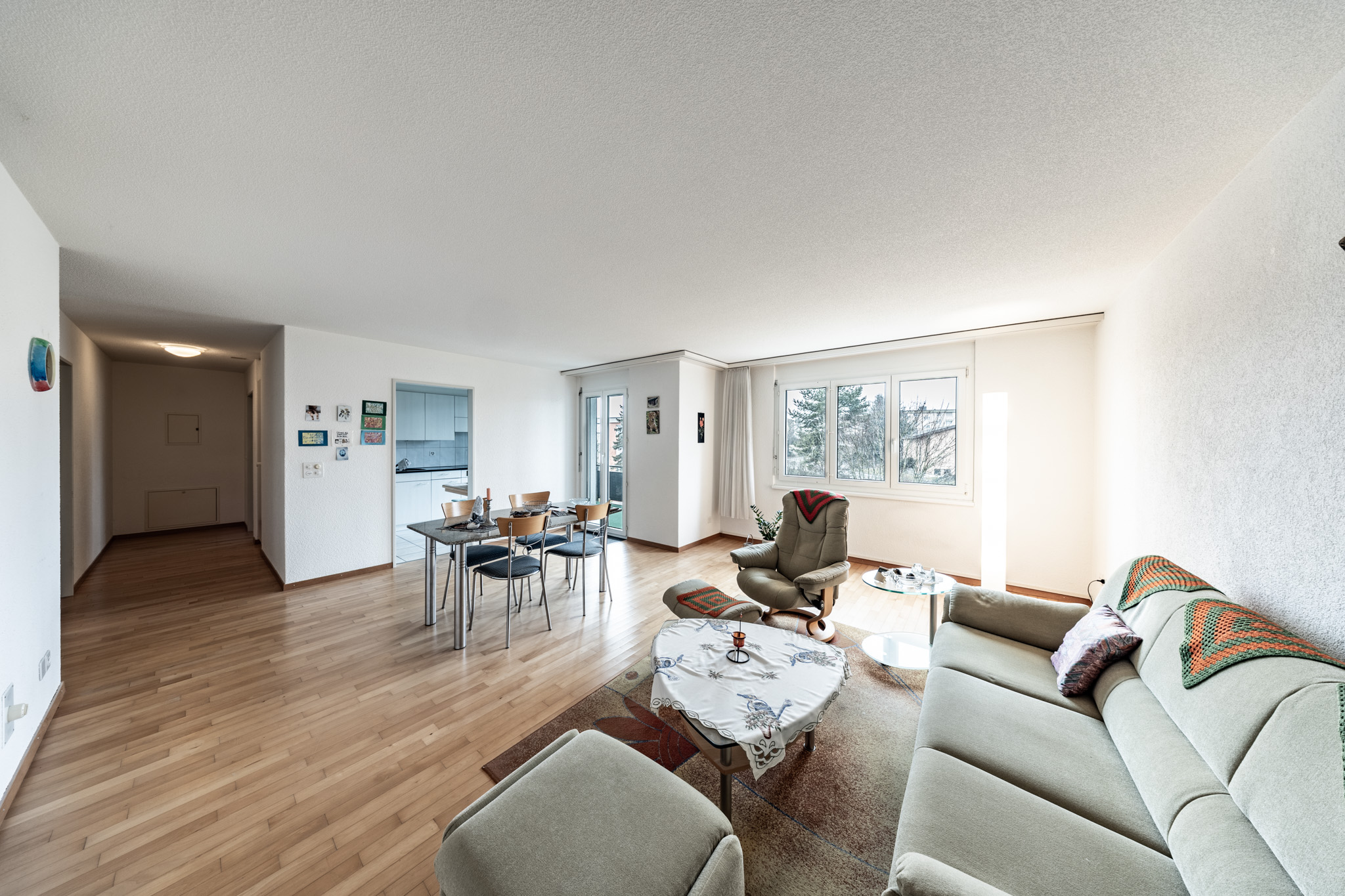 Die ansprechende Küche lädt ein zum Kochen, Backen und Naschen. Von hier und vom Wohnzimmer gelangen Sie auf den Westbalkon, auf dem Sie jeden Tag aufs Neue den erholsamen Ausblick und angenehme Sonnenstrahlen geniessen. Auch im Untergeschoss können Sie Räumlichkeiten für Ihre Aktivitäten und Gegenstände nutzen. Ein Tiefgaragenplatz kann bei Bedarf für CHF 30'000.-- dazu erworben werden.