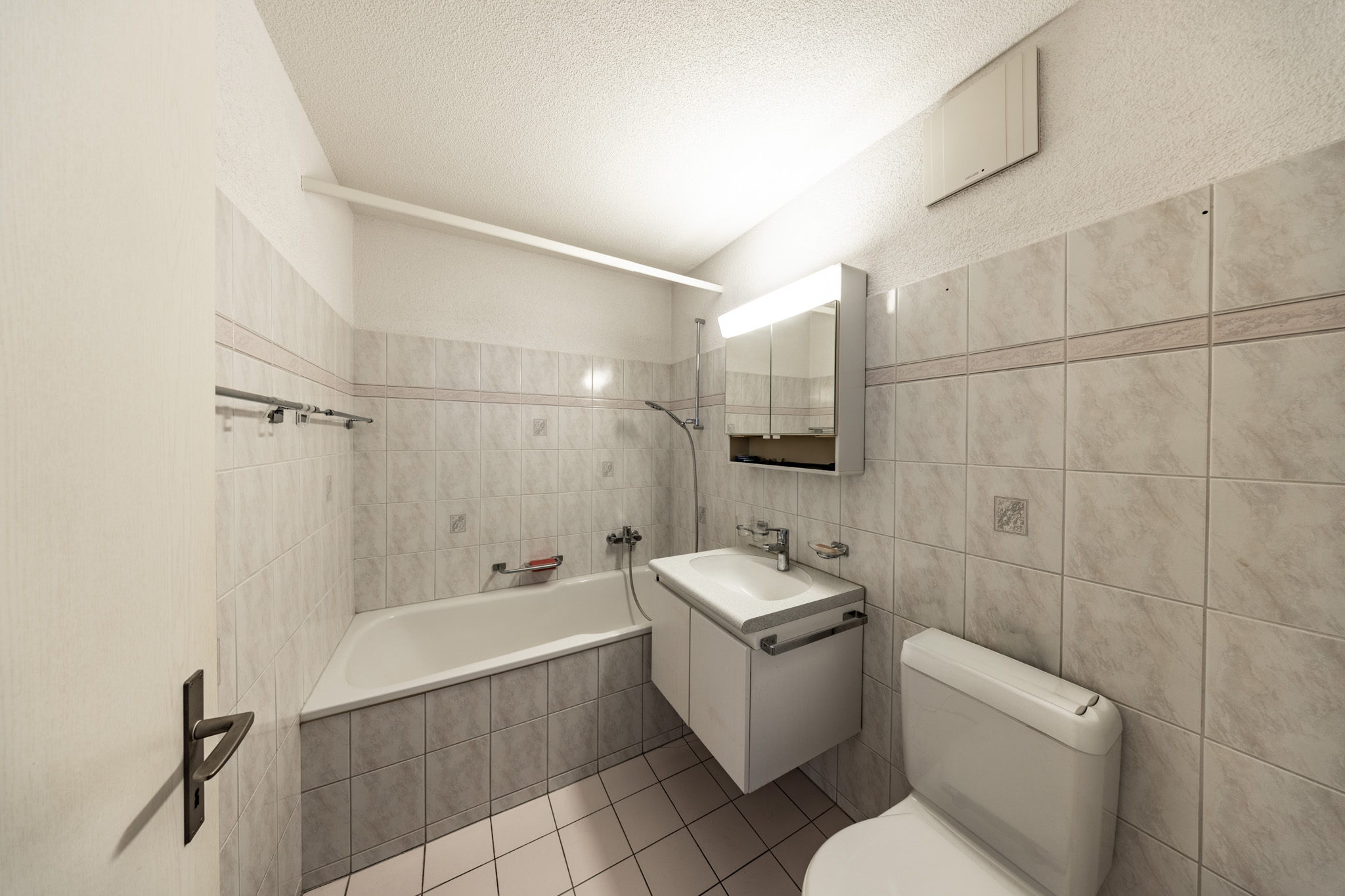 Der Lift bringt Sie direkt vor die Tür Ihres neuen Zuhauses. Ausser den zweieinhalb Zimmern verfügt die geräumige Wohnung auch über ein ansprechendes Entrée inklusive praktischer Garderobe. Im hellen Wohn- und Essbereich und im Schlafzimmer begeistert der angenehme Parkettboden und sorgt für Behaglichkeit. Selbstverständlich weiss auch das Badezimmer zu überzeugen, das mit einer Badewanne ausgestattet ist.