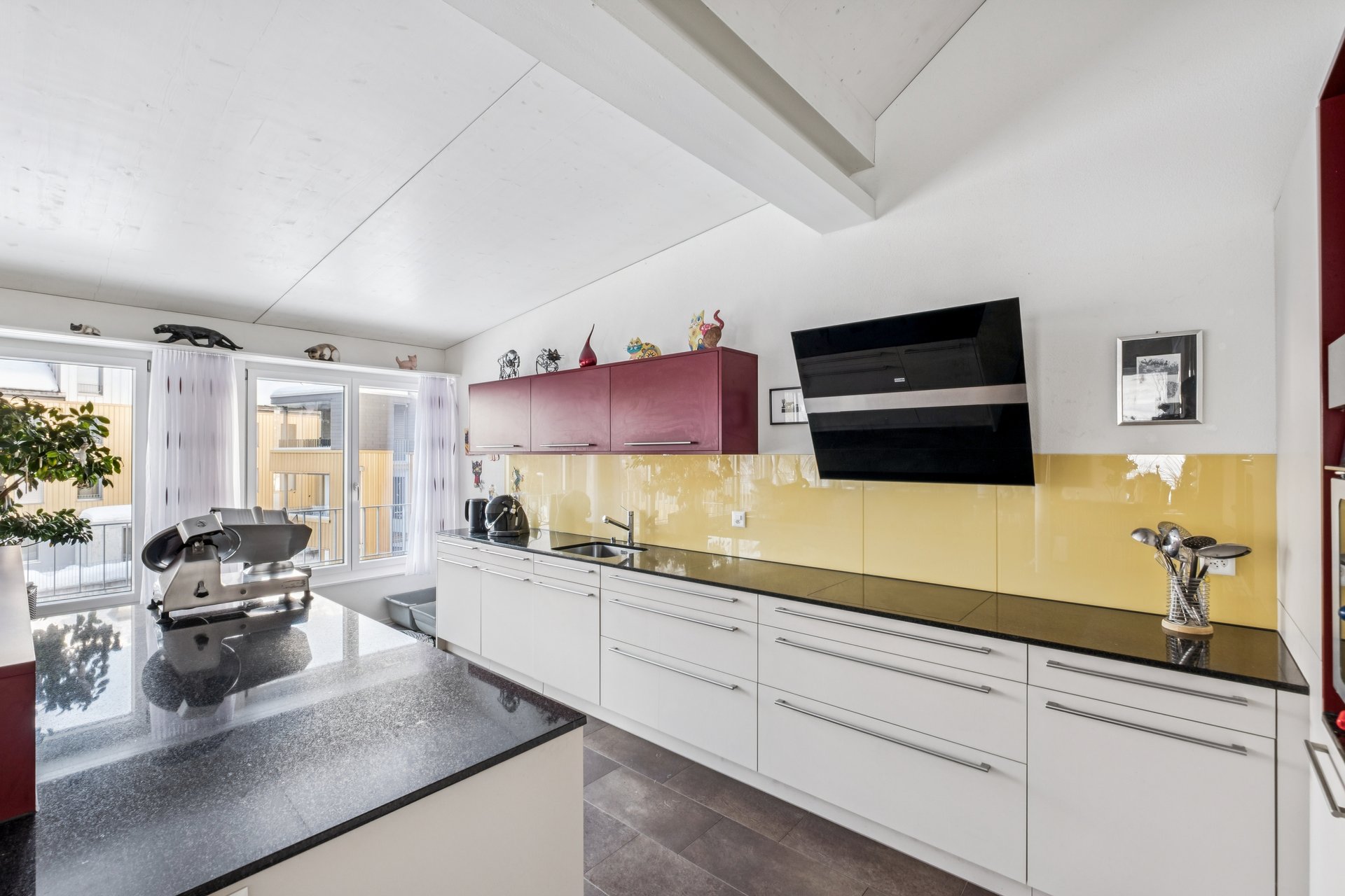 Die Wohnung kann sowohl als Erst- als auch als Zweitwohnsitz genutzt werden. Der Eingangsbereich mit Garderobe führt in den hellen Wohnraum, dessen überhohe Decken ein besonders angenehmes Wohngefühl schaffen. Bodentiefe Fenster und zusätzliche Dachfenster sorgen in allen Räumen und im Bad für viel Tageslicht.