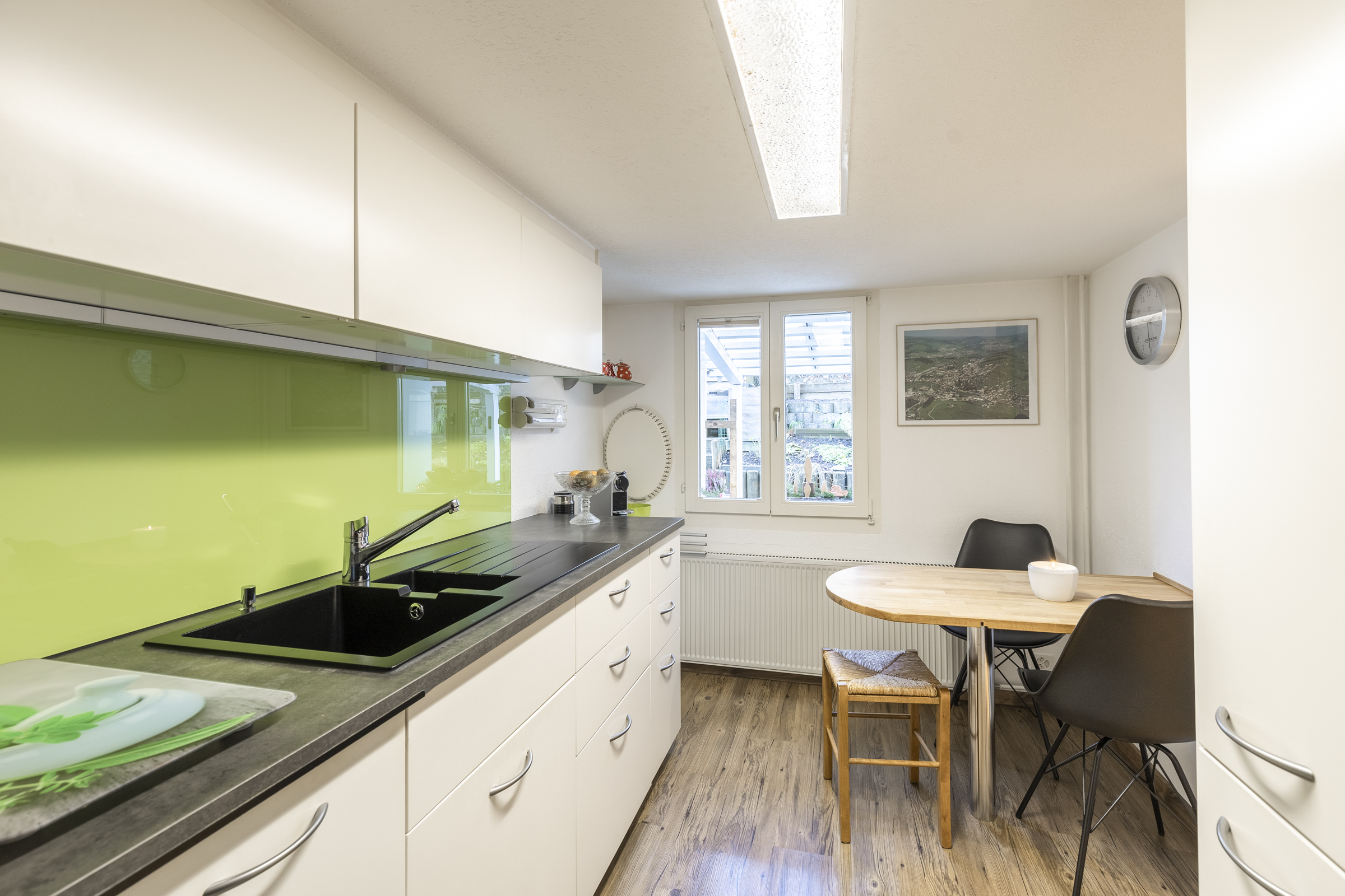 Im Untergeschoss stehen Waschküche/Haustechnik sowie ein klassischer Naturkeller zur Verfügung – viel Stauraum für Vorräte, Sportgeräte und Saisonales. Die Liegenschaft wurde über die Jahre sorgfältig erneuert. Gedämmte, mit Eternit erneuerte Fassaden, modernisierte Küche und Elektrik, Schallschutzfenster im Keller sowie eine zuverlässige Gasheizung mit Aussenkamin unterstreichen den zeitgemässen Zustand.