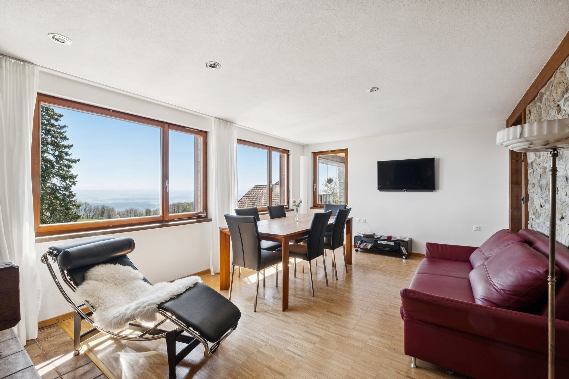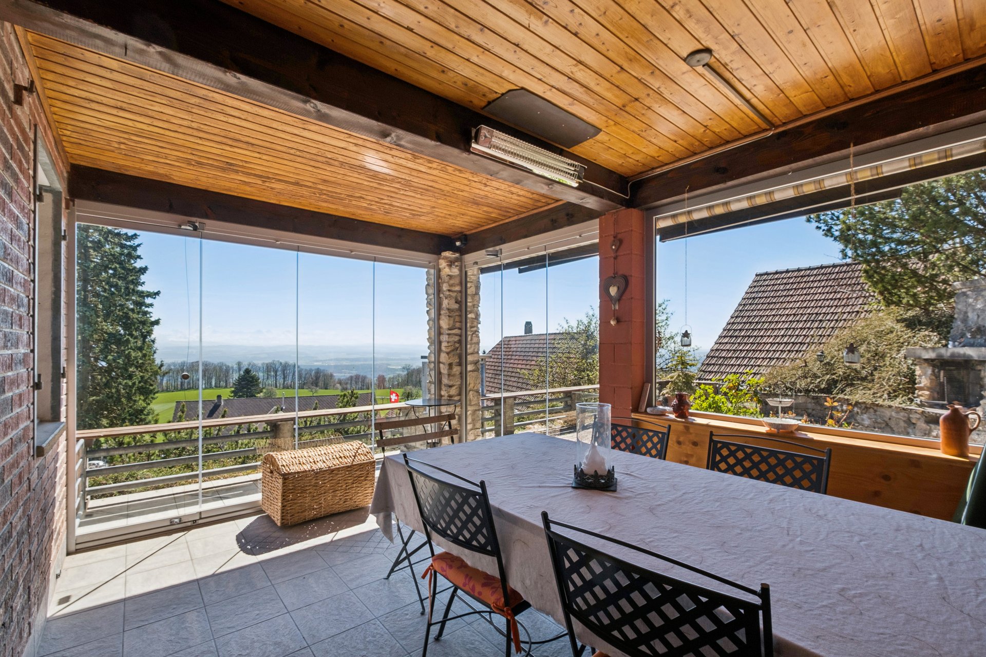 Im grosszügigen Wintergarten geniessen Sie den Blick über das Mittelland auch an den kühleren Herbsttagen, wenn die Fernsicht besonders beeindruckend bis zu den Alpen reicht.