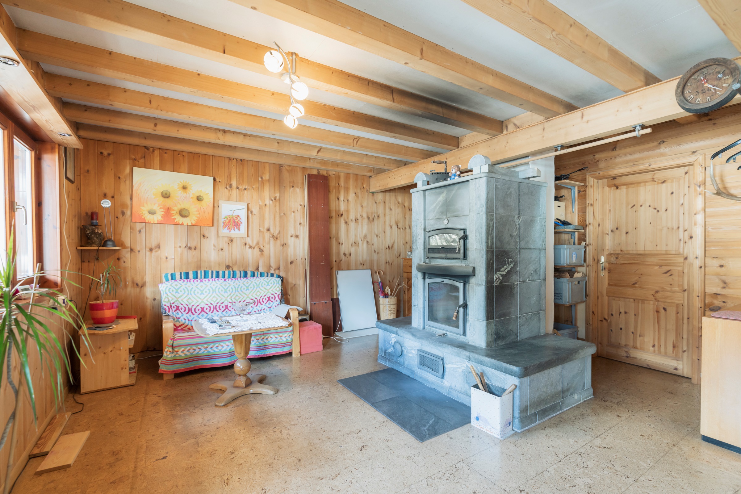 Das Erdgeschoss verfügt über ein Zimmer sowie über ein gemütliches Wohnzimmer, in dem das stilvolle Cheminée wohlige Wärme und eine behagliche Stimmung verbreitet. Das Badezimmer mit Badewanne und die Wohnküche ergänzen zusammen mit dem wunderbaren Wintergarten diese Wohnebene. Der vorgelagerte Balkon und die umfangreiche Hochbeet-Terrasse (ca. 58 m2) begeistern mit einem herrlichen Ausblick auf die imposante Bergwelt.