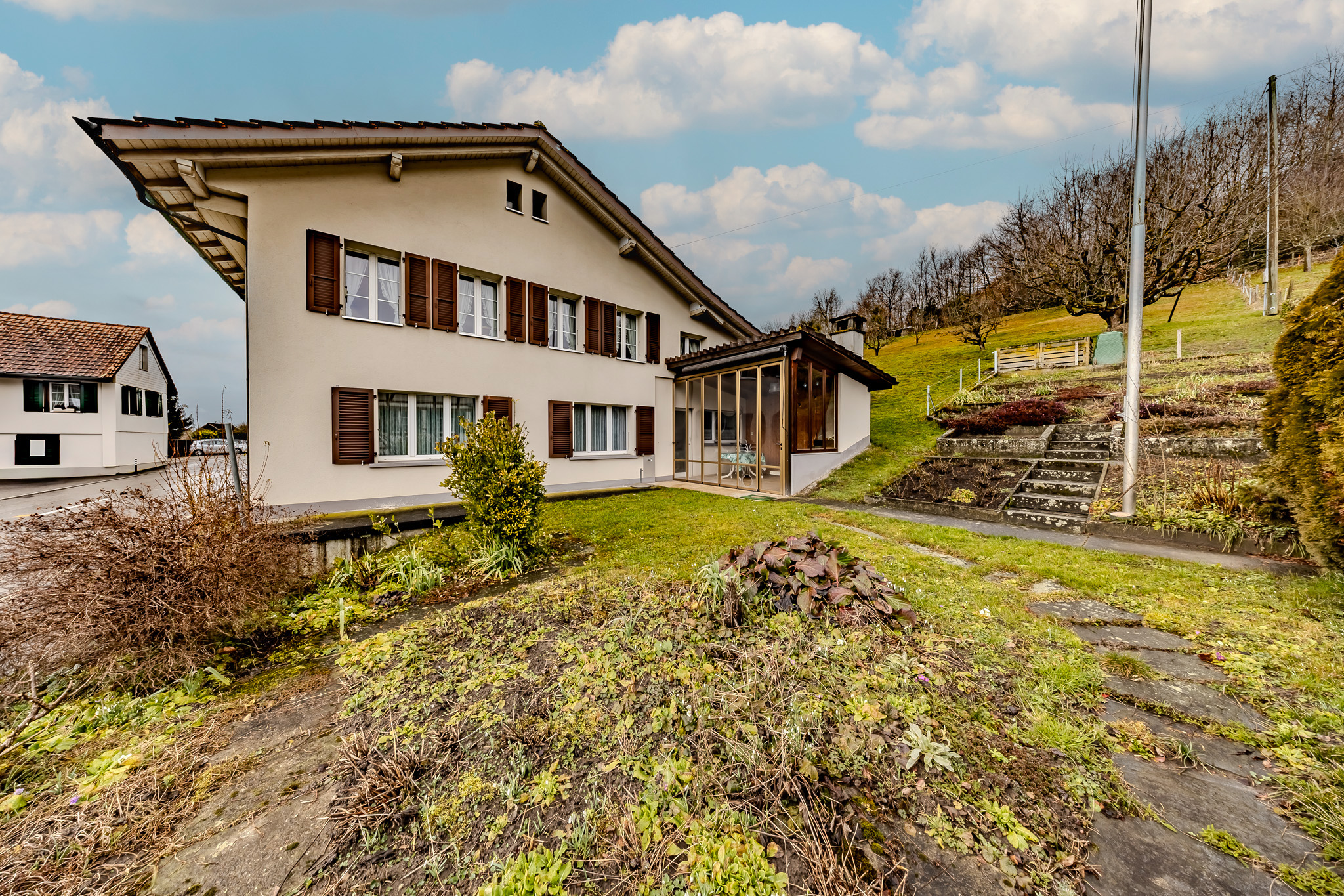 Dieses freistehende Einfamilienhaus mit charmantem Altbaucharakter wurde 1960 totalrenoviert. Die bestehenden Strukturen eignen sich für eine sorgfältige Renovation und bieten viel Raum für persönliche Gestaltungsideen. Familien schätzen die Grosszügigkeit und das ländliche Wohnumfeld an sonniger Lage. Für Architektinnen und Architekten ist das Objekt ein interessantes Fundament für kreative Konzepte.
