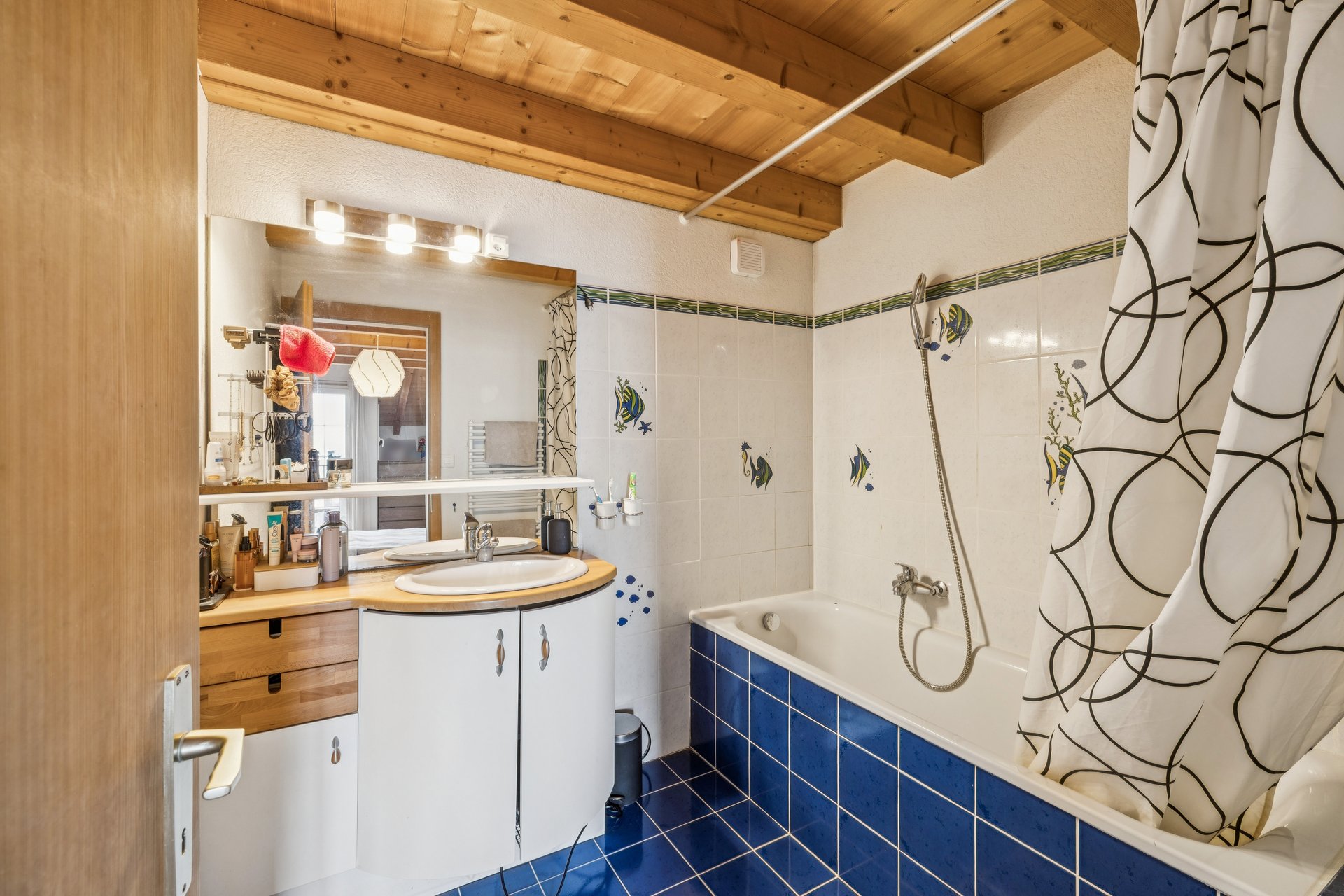 L’étage supérieur propose deux belles chambres, une salle de bain ainsi qu’un WC séparé. Un balcon apporte encore un confort supplémentaire et une agréable ouverture sur l’extérieur.