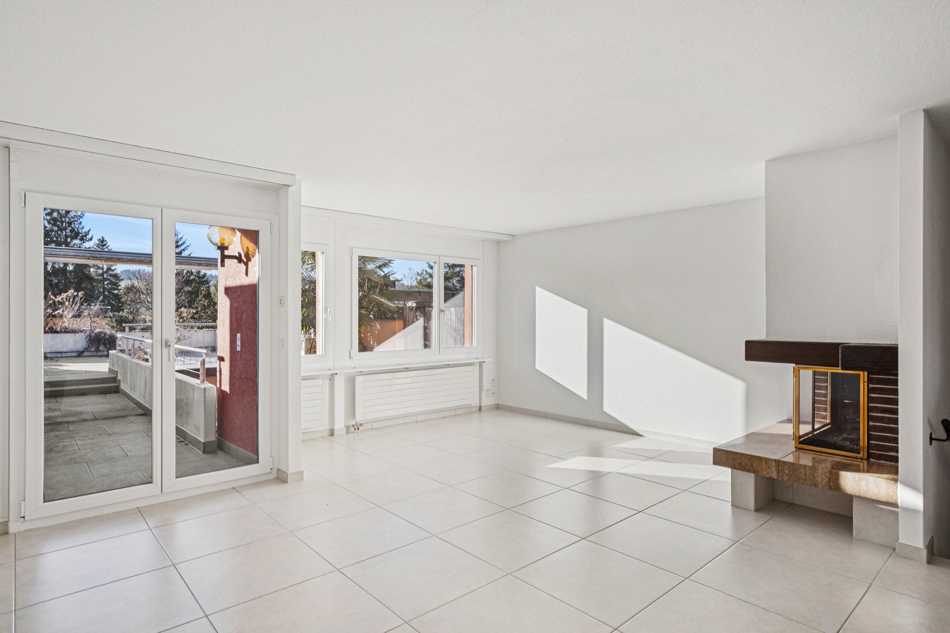 Auf der oberen Etage erwartet Sie ein lichtdurchfluteter Wohn- und Essbereich mit einer grossen Küche sowie Zugang zur sonnigen Terrasse. Die Küche bietet viel Platz für kulinarische Kreationen, während das helle Esszimmer jede Mahlzeit zum Genuss macht. Im Wohnzimmer zaubert das stilvolle Cheminée im Winter eine knisternde Stimmung in den Raum. Zusätzlich befindet sich auf dieser Etage ein charmantes Badezimmer mit Dusche.