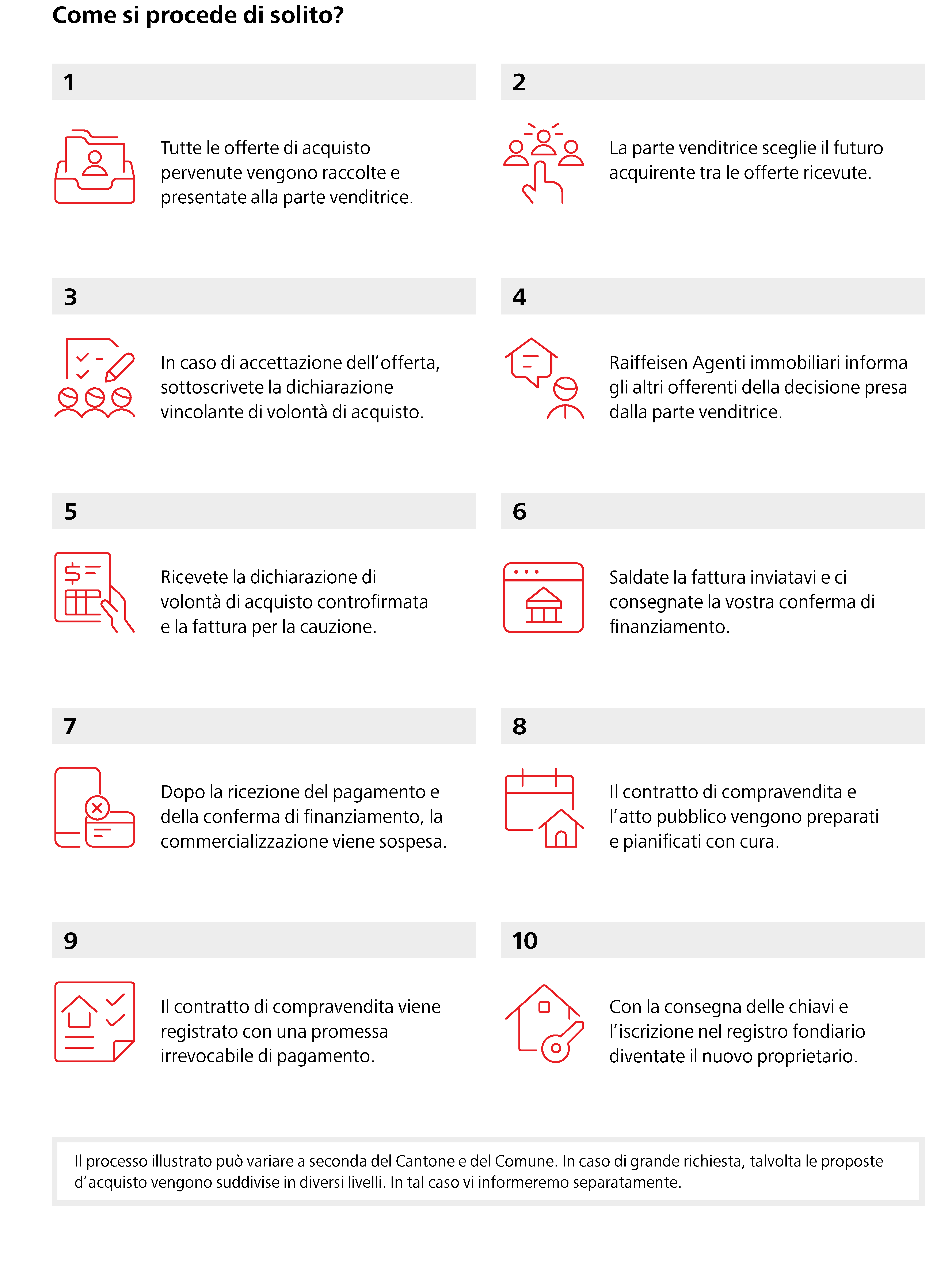 Di norma il processo di vendita di un immobile con RAIFFEISEN Agenti immobiliari si articola nelle seguenti fasi: