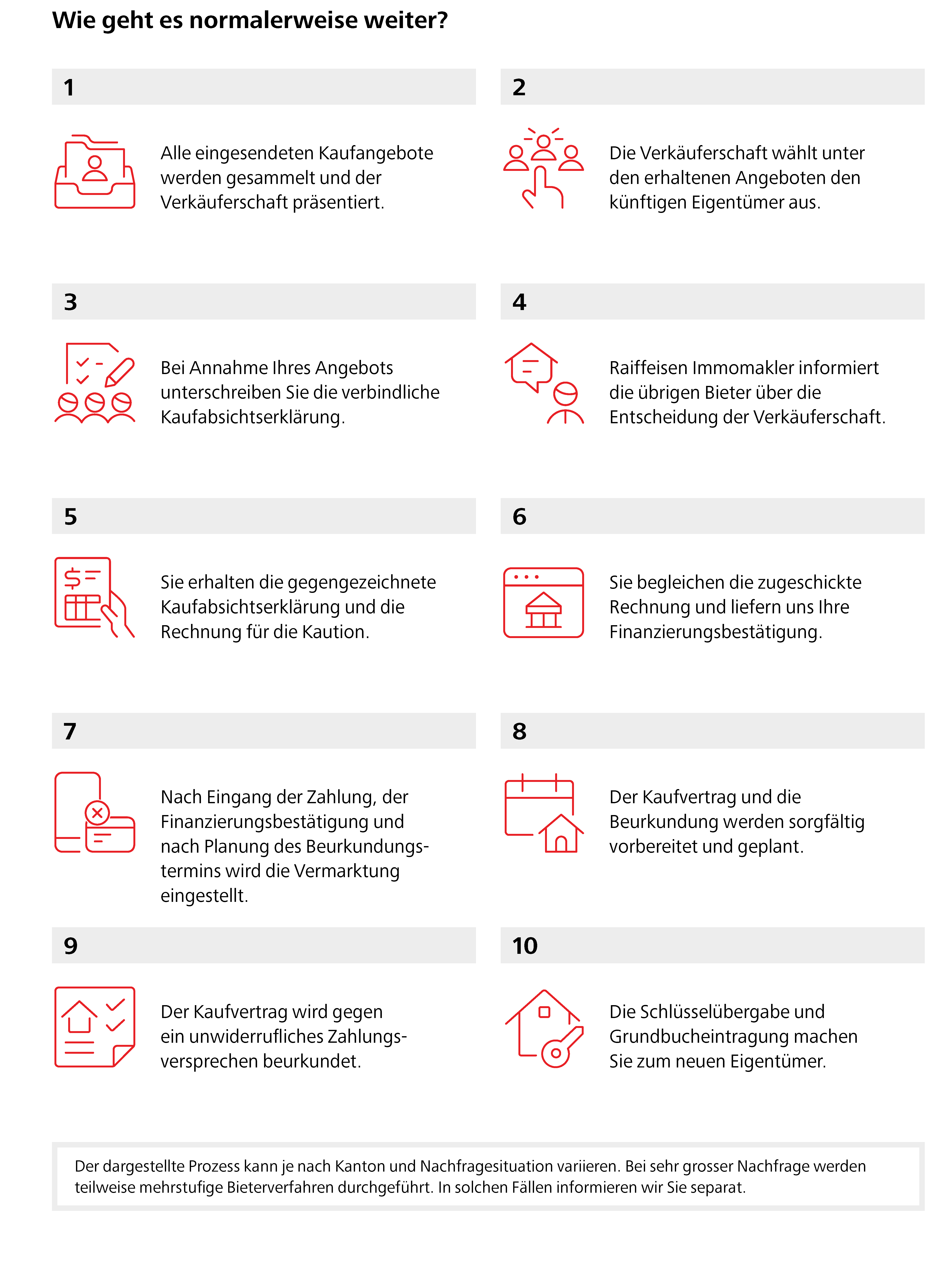 Der Verkaufsprozess einer Immobilie findet bei Raiffeisen Immomakler üblicherweise in folgenden Schritten statt: